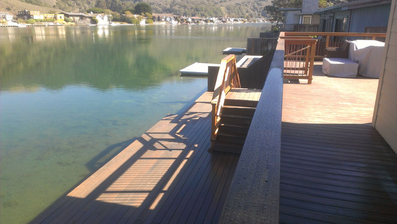 PMHI also supplied the synthetic Fiberon decking for the deck as well as the dock on the water. This feature, along with the Certainteed cement fiber siding helped the whole home achieve a "Green Built" rating.