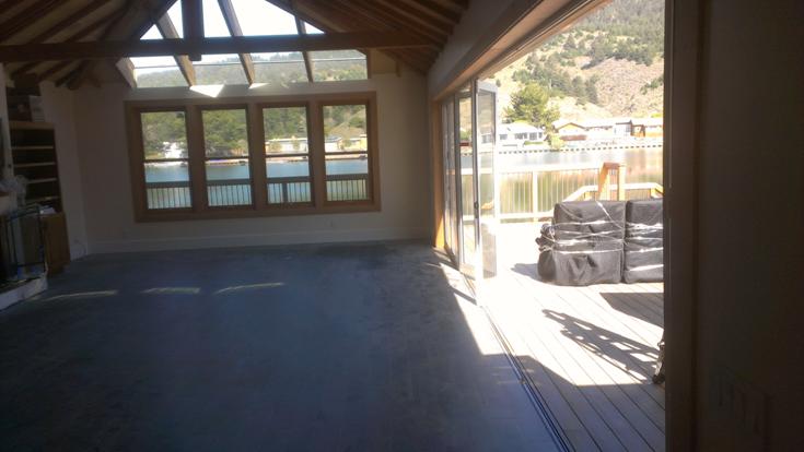 This home was designed to take maximum advantage of the water and mountain views. It features a 27 foot wide sliding glass door assembly that completely opens to a large waterfront deck. This incorporates the outside living space with the living room and kitchen making one very large room.