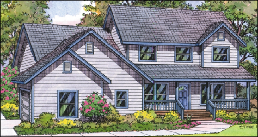 This design includes, Interior and Exterior Panelized Wall Sections, Pre-Installed Exterior Wall Sheathing, Factory Installed Windows, Pre-Hung Exterior Doors, Roof Trusses, Roof Sheathing, Lap Siding, House Wrap, Exterior Trim, Computerized Inventory, Assembly Instructions and Pre-Engineered Building Plans which include the foundation design. After you've completed our purchase process we will also supply our standard contract for you to sign and finalize the purchase of this home kit. This paperwork will include our package specification for your specific project. Decking and Railing not included with package.